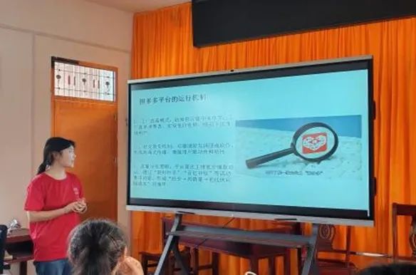 “茶韵知行”暑期社会实践团队成员讲解小红书的开店流程