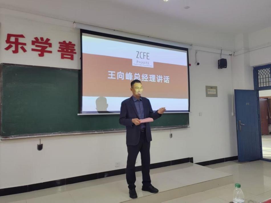 南阳正大有限公司总经理王向峰在讲话中表示,正大集团高度重视与郑州财经学院的合作,创新班项目是双方共同探索人才培养模式的重要实践。他鼓励同学们把握校企合作平台带来的机遇,积极参与企业实践,提升综合能力,为未来职业发展奠定坚实基础。