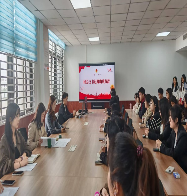 国歌奏毕,团总支书记郑璐琪率先发言。她首先回顾了第四期青马班一年来的培养历程,充分肯定学员们在理论学习与实践锻炼中取得的成长,展现出了青年马克思主义者的良好风貌。郑老师强调,青马工程不仅是共青团肩负的重要政治任务,更是为党培育后备力量、确保事业薪火相传的关键工程。