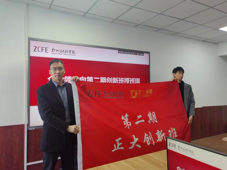 霍春阳在致辞中介绍了正大集团的发展历程、行业影响力及人才培养理念。她表示,创新班是校企优势互补的重要载体,集团将整合优质产业资源,选派经验丰富的企业导师参与教学,通过实战化课程、岗位见习等多元形式,助力学生提升职业素养和实践能力,期待与郑州财经学院携手培养更多适应行业发展需求的创新型人才。
